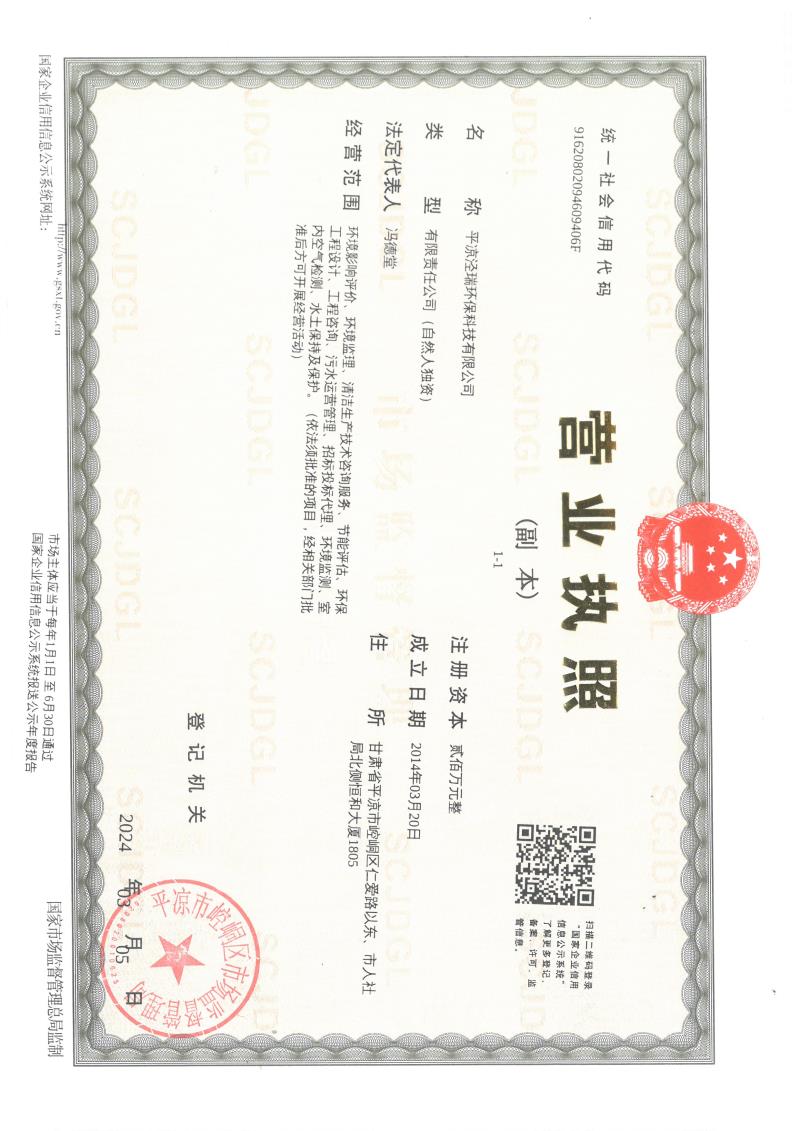平?jīng)鰶苋瓠h(huán)??萍加邢薰緺I業(yè)執(zhí)照