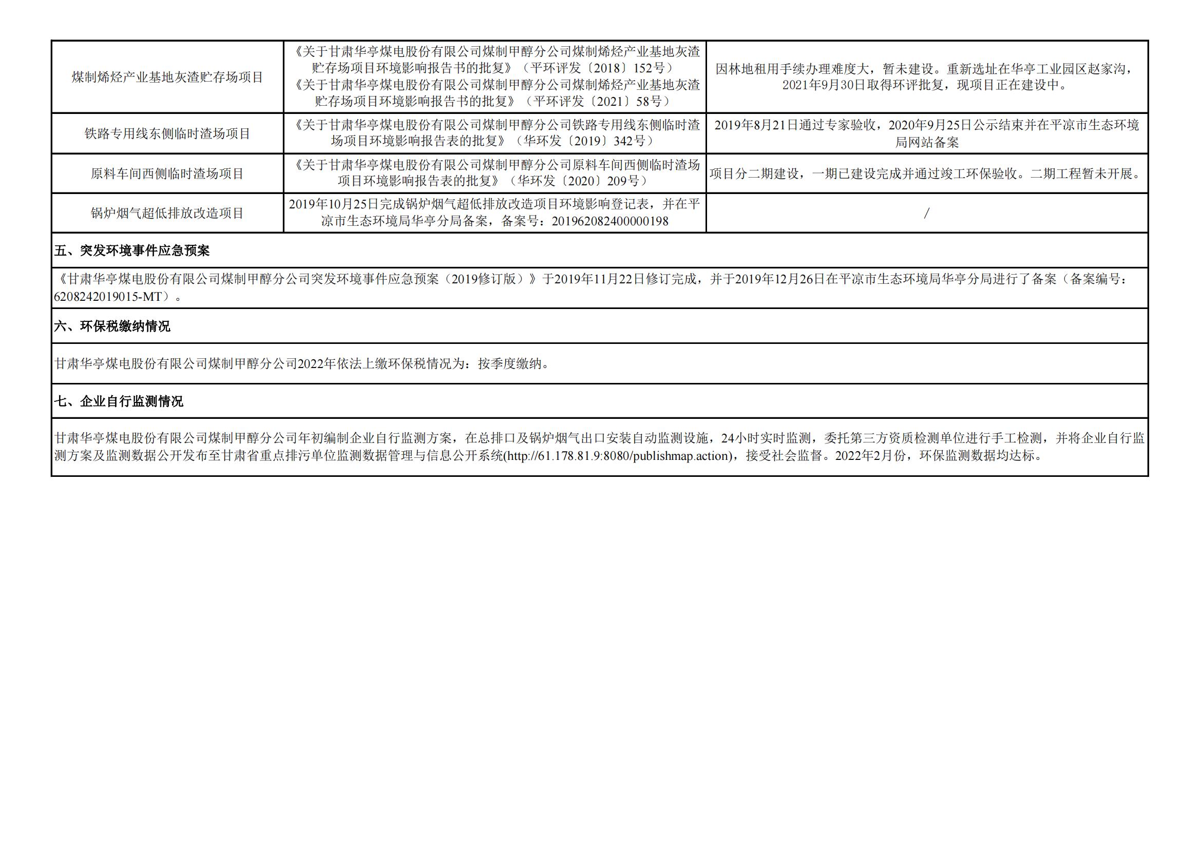 煤制甲醇分公司環(huán)境信息公開內(nèi)容(2022年2月)