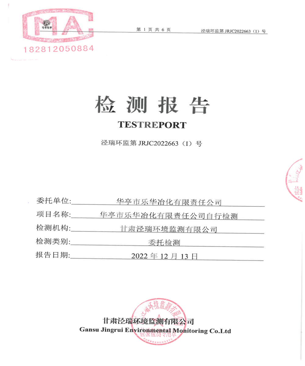 華亭市樂(lè)華冶化有限責(zé)任公司自行檢測(cè)報(bào)告